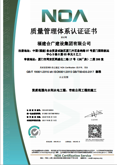 福建合廣建設集團有限公司,注冊資本5188萬元人民幣,公司位于廈門市同安區鳳山一里151-17號。本公司成立于2013年,公司具備市政公用工程、水利水電工程、房屋建筑工程、公路工程、園林綠化等多專業施工資質。企業從業人員100多人,各類專業技術人員70多人,其中高級職稱8人,中級職稱40多人,一級建造師6人,二級建造師15多人。